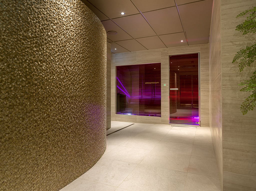 Another unique experience is the heated beds. The beds are ergonomically shaped to hug the body and give full relaxation. Behind the heated beds there are a glimmering golden wall that gives an extra feeling of luxury.